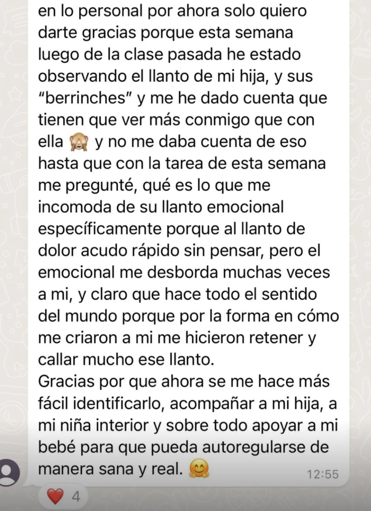 • Descubrió cómo manejar los desbordes y acompañar a su hijo en los momentos más duros desde la conexión y no desde el castigo, logrando que Diego se sintiera más comprendido y calmado.